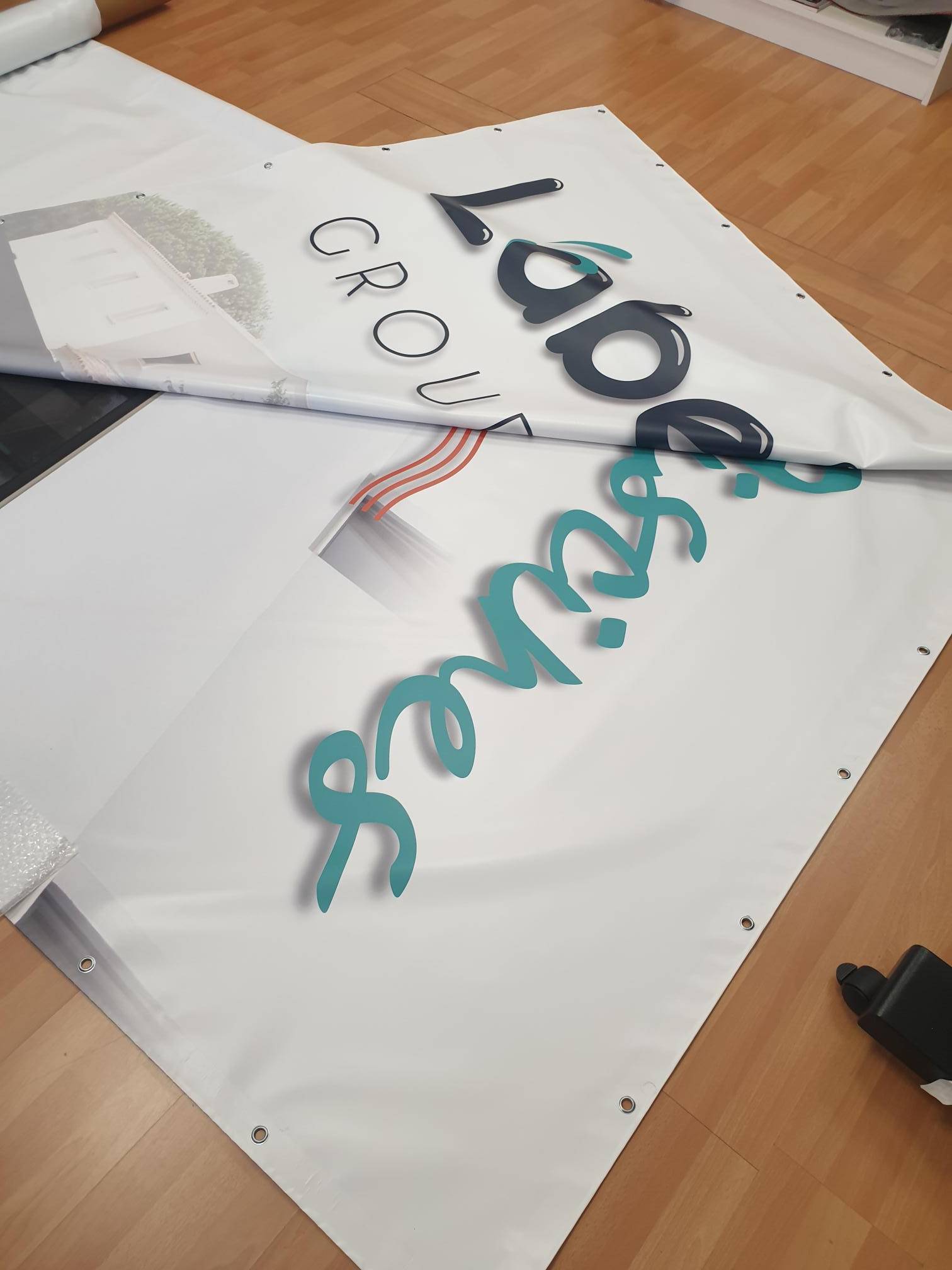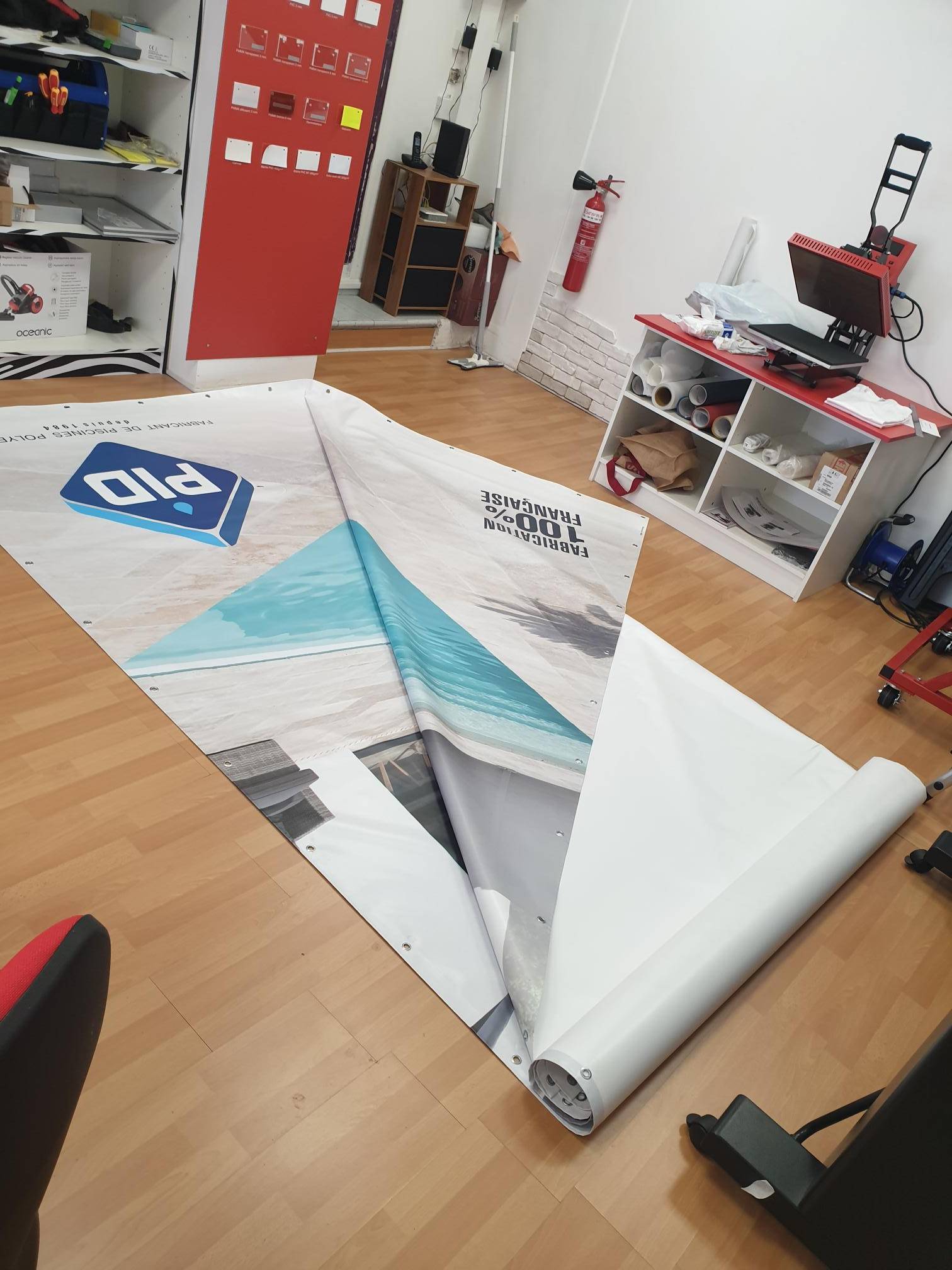 Petit ou grand format avec finitions de qualité, œillets métalliques, ourlets, fourreaux, tout cela est disponible dans nos finitions avec une impression HD conforme à votre validation.
