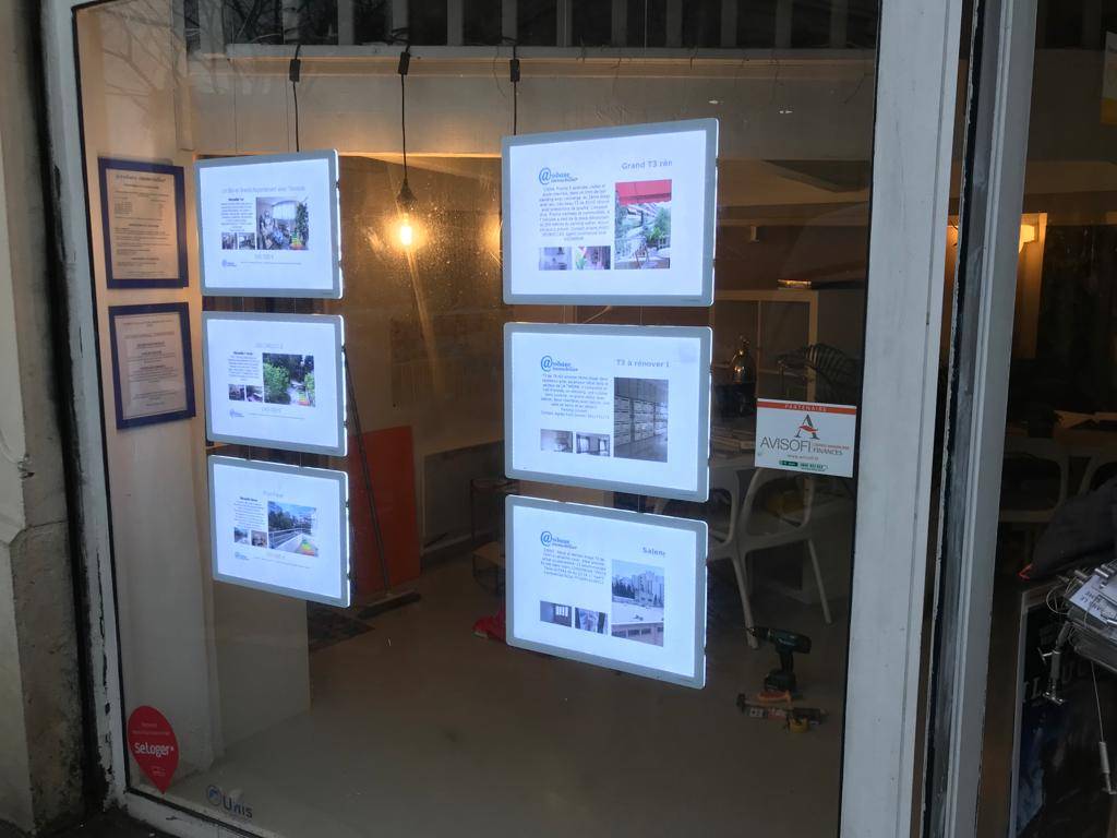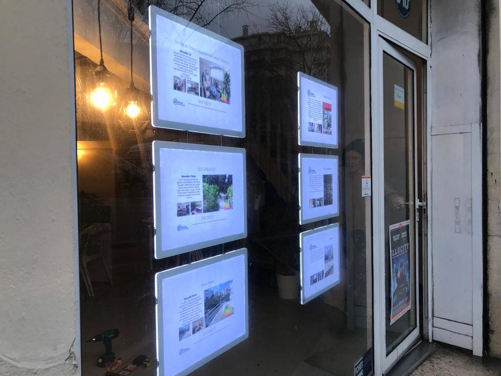 cadres plexi suspendus lumineux pour mettre en valeur vos annonces immobilières.