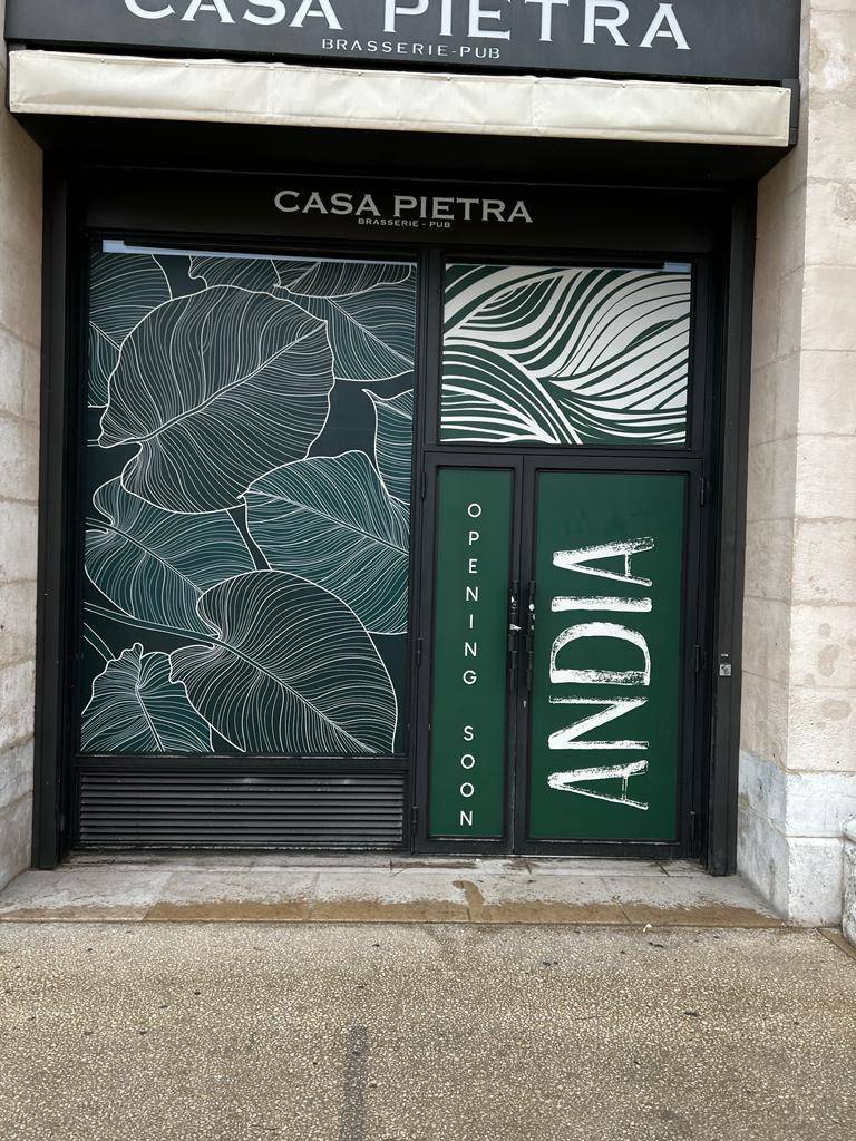 PANO MARSEILLE a créé le visuel non lumineux du restaurant ANDIA sur Marseille, avec une impression numérique HD sur adhésif.