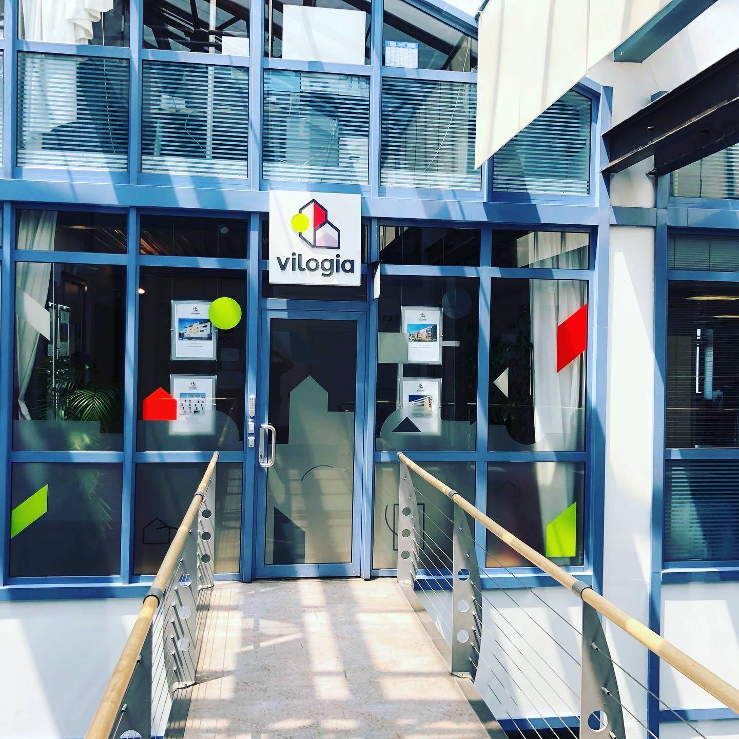 décoration vitrine d'entrée d'agence immobilière Vilogia, ainsi que du