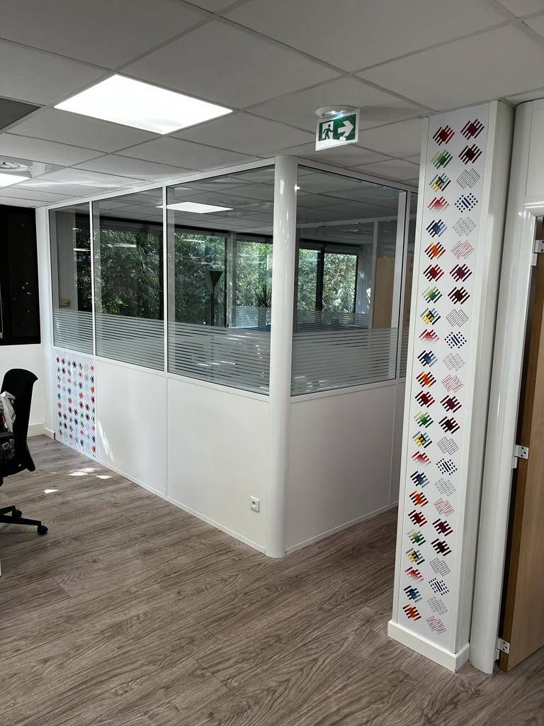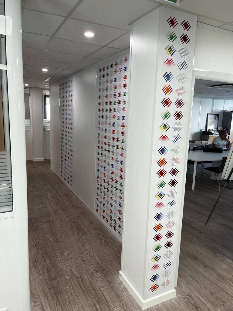 pose des visuels pour des espaces de travail de l'entreprise