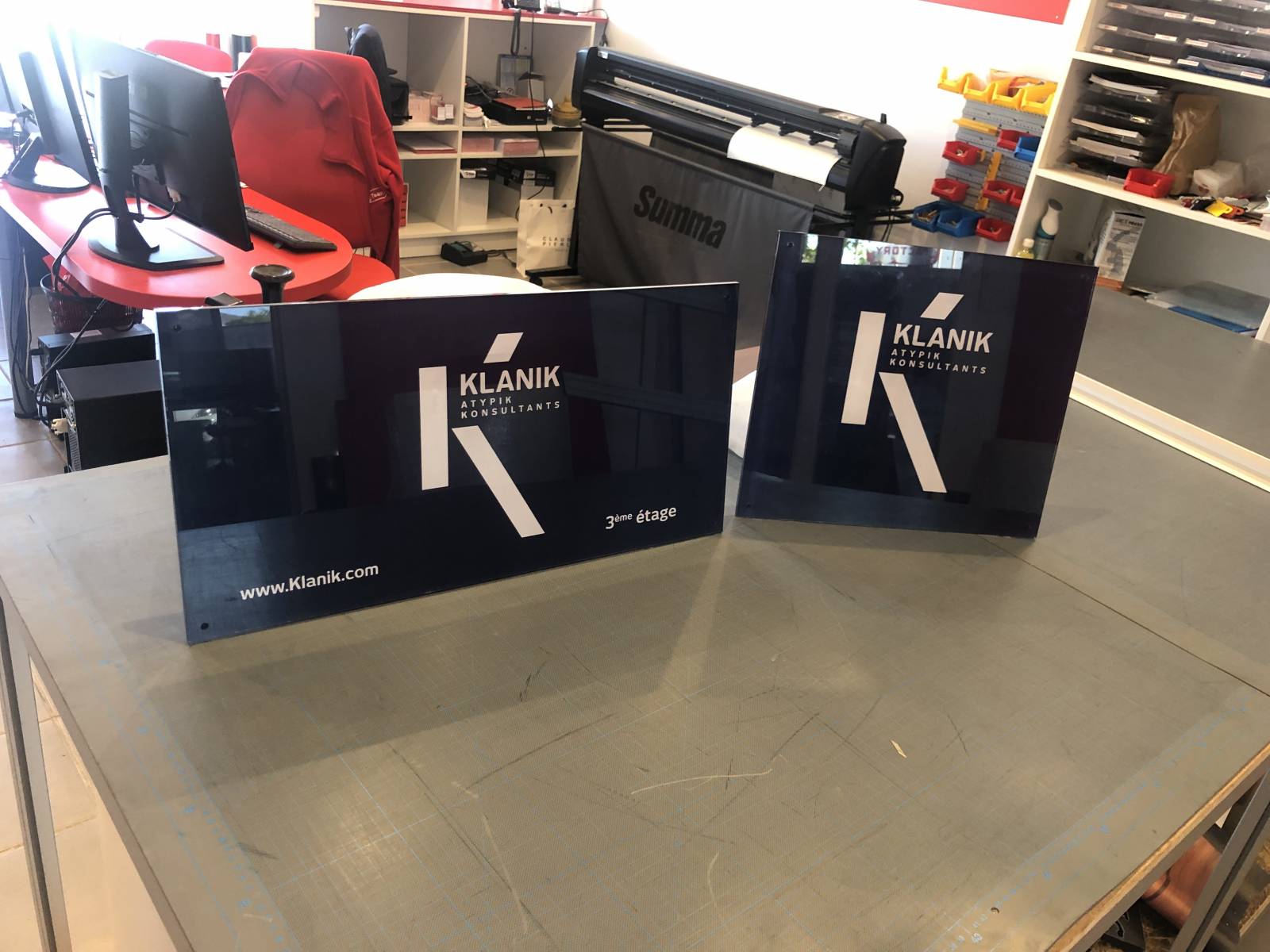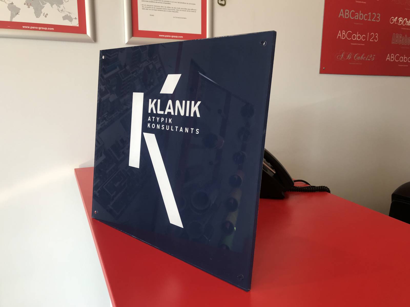 signalétique plexi avec impression numérique selon validation des clients.