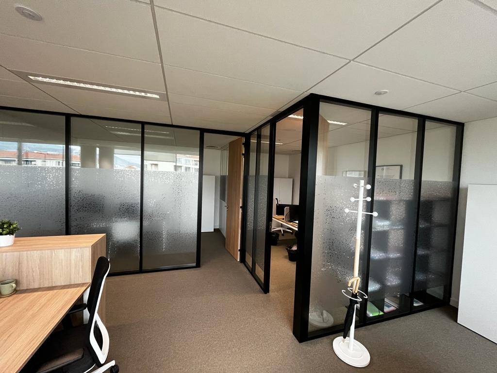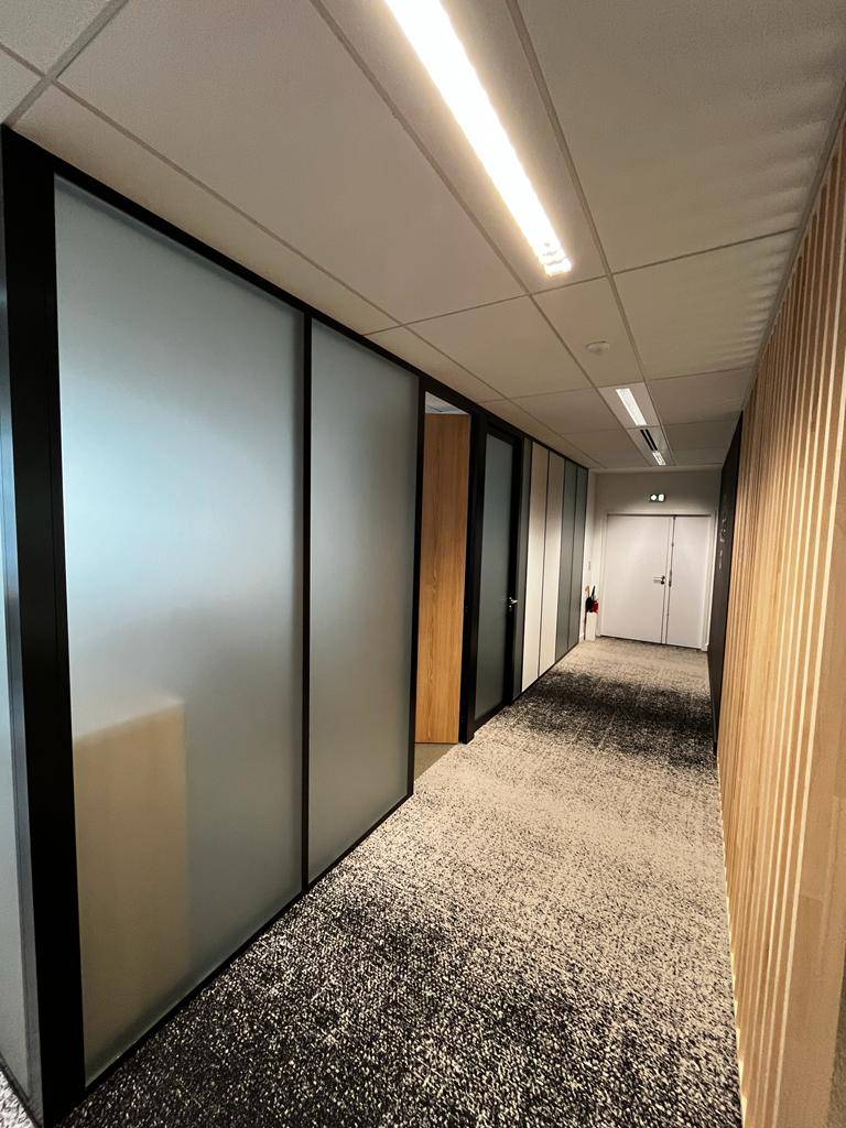 décoration adhésive de film dépoli pour un vitrage de bureaux