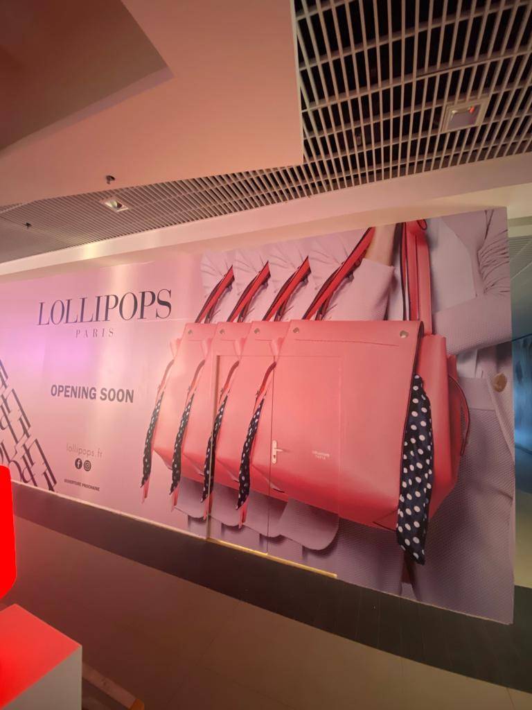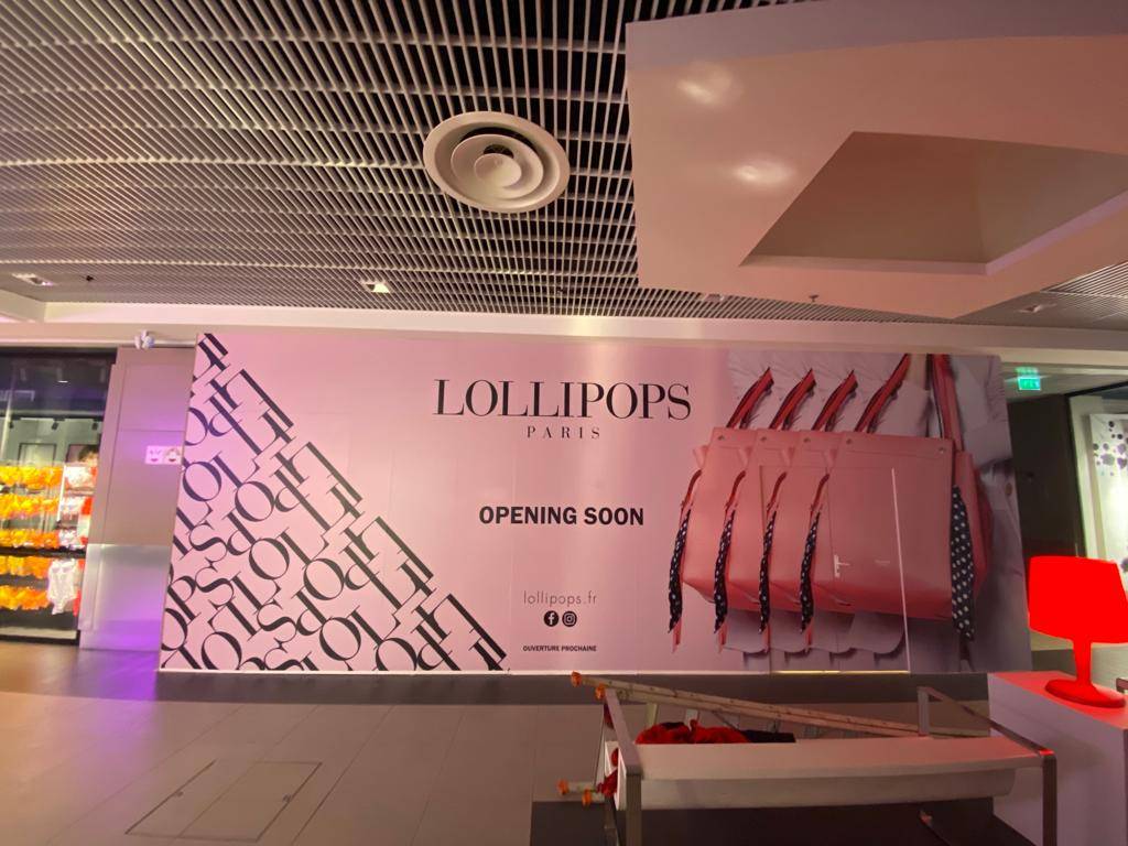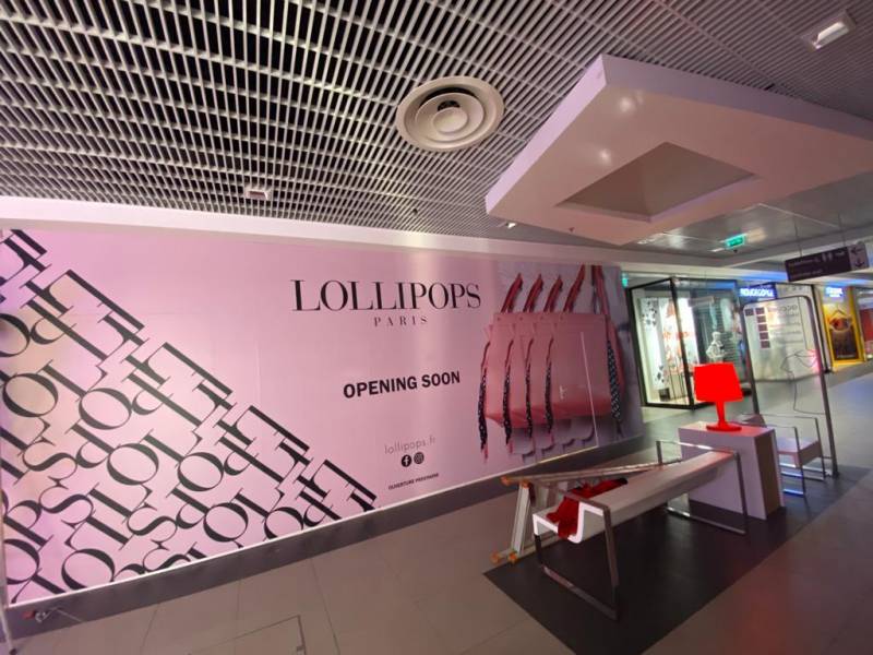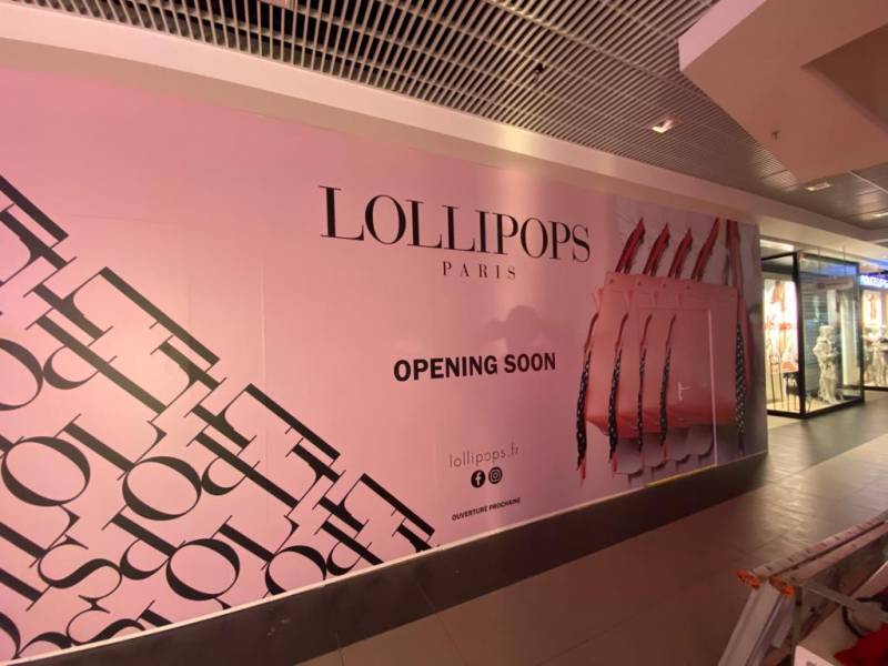 Visuel collé sur les parois de la palissade en PVC blanc.