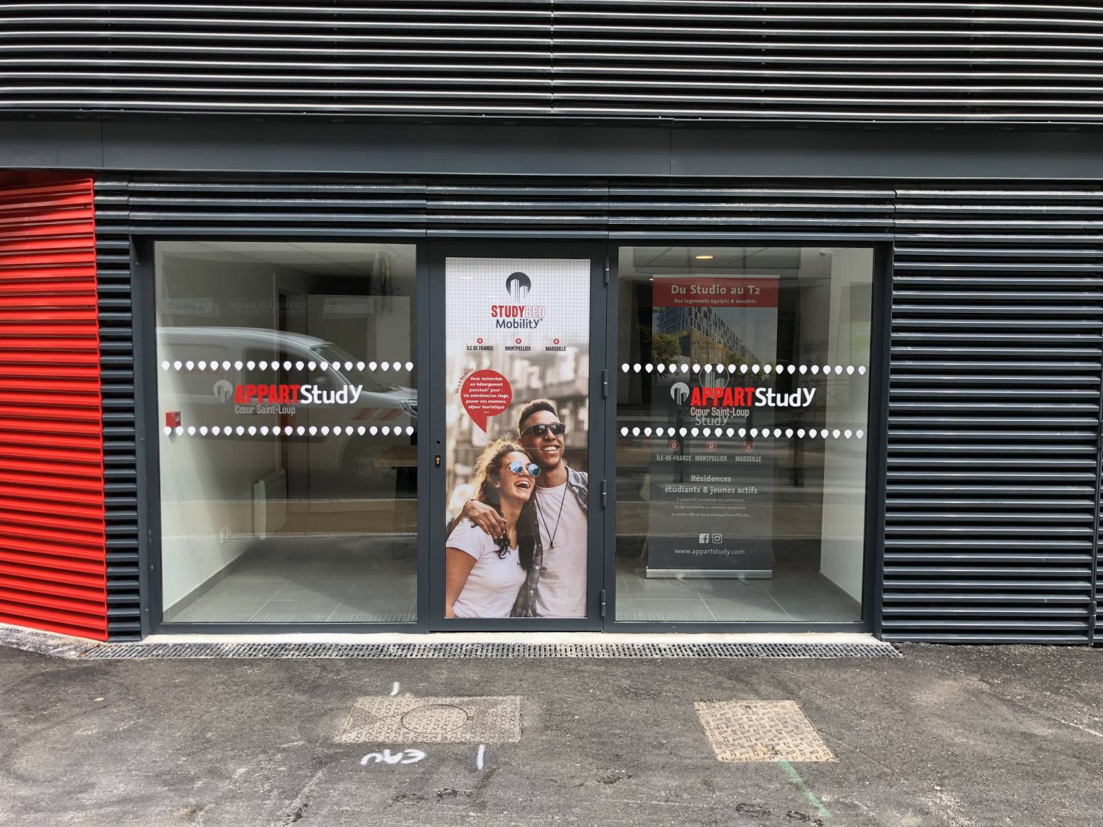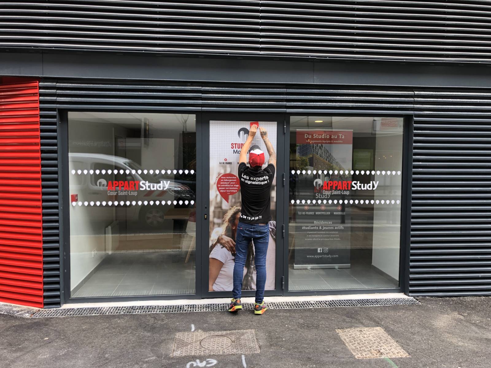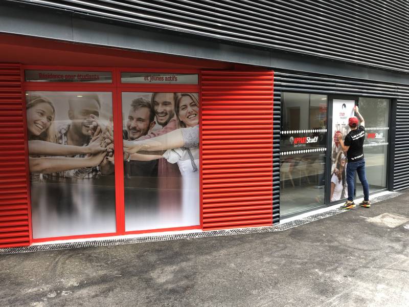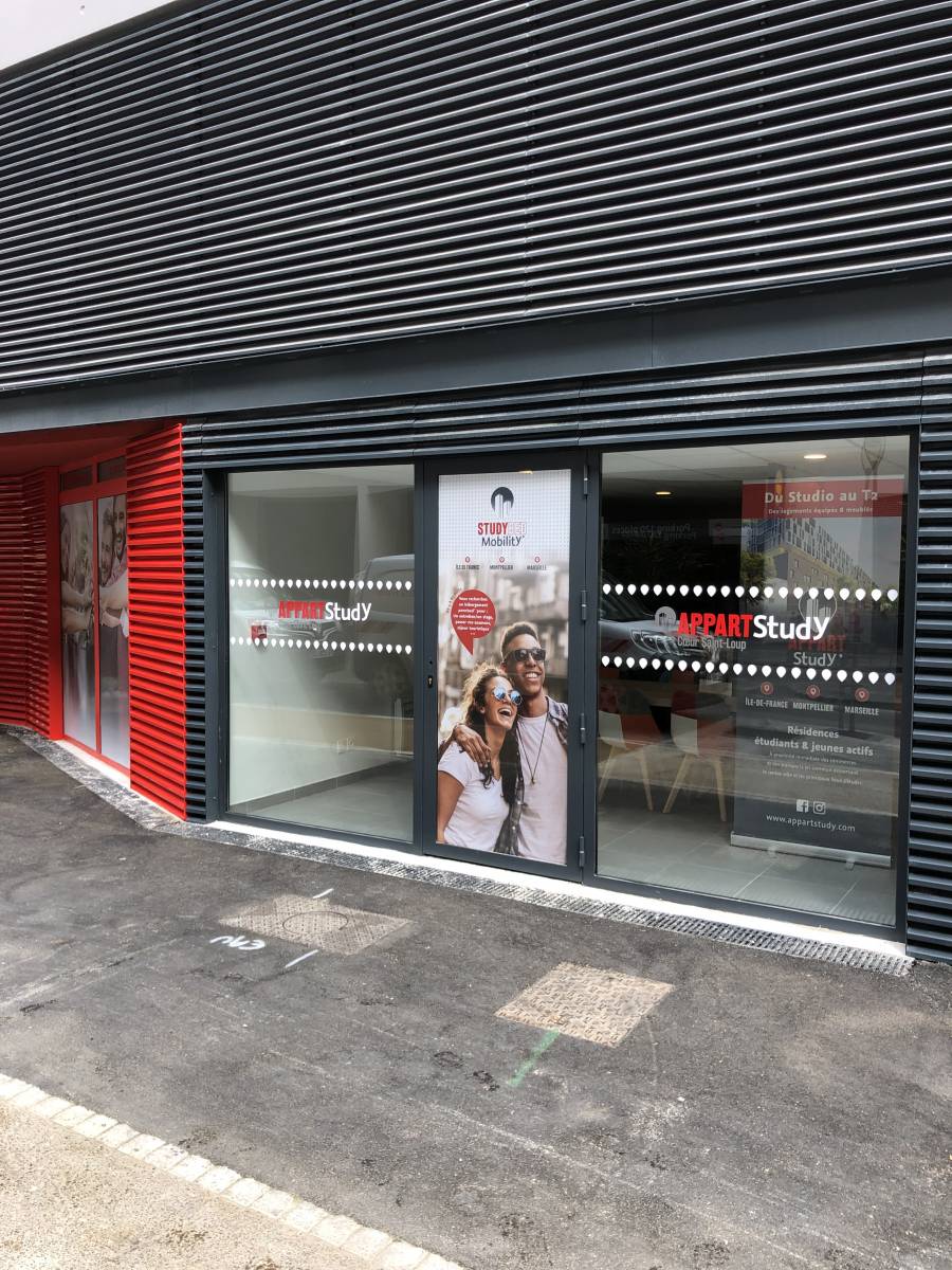 décoration vitrine d'entrée des Apparts Study à St Loup.