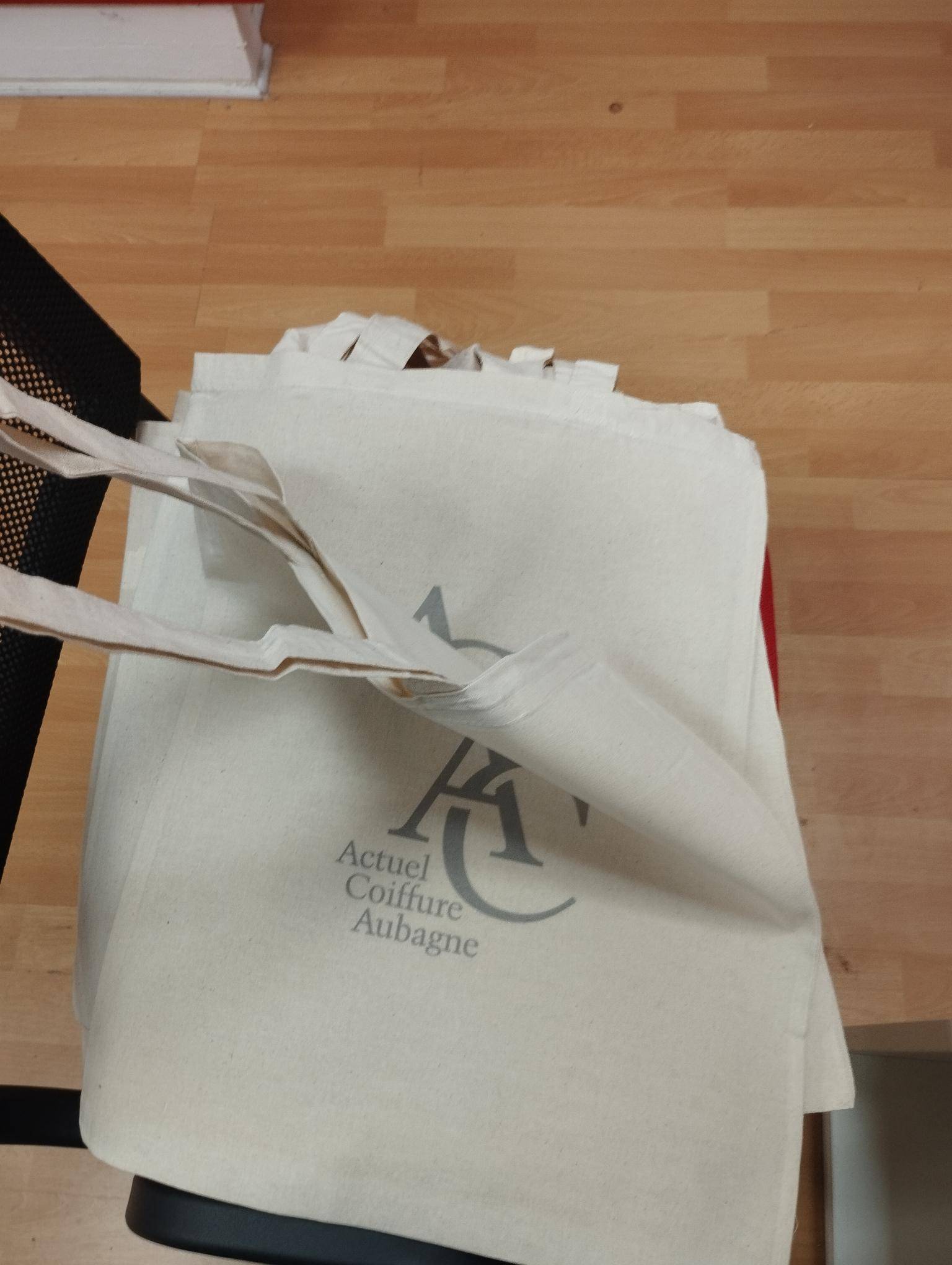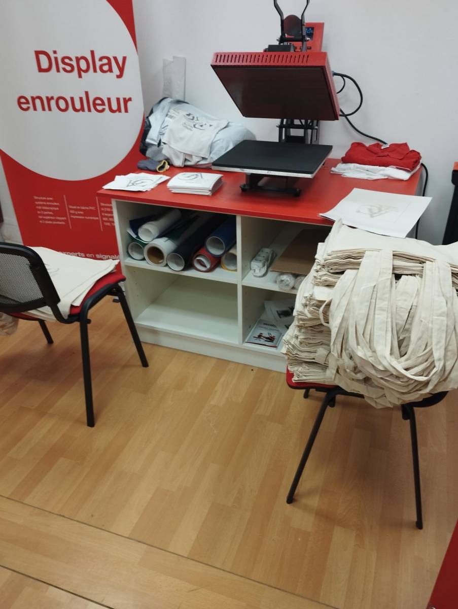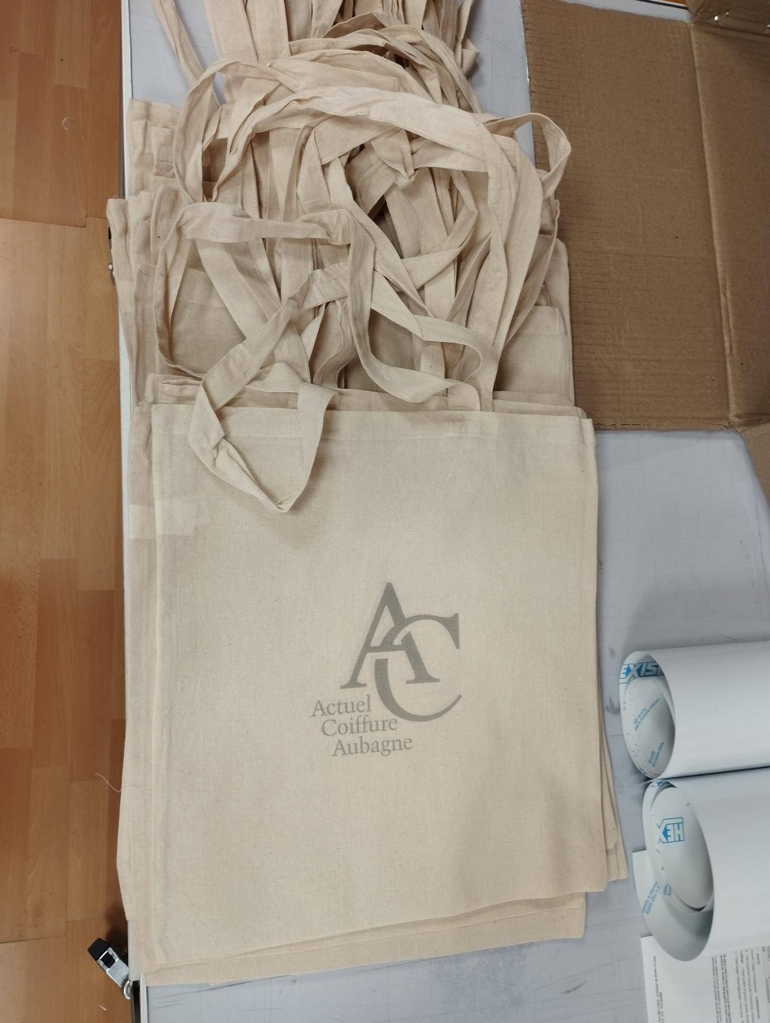 Actuel Coiffure, flocage à chaud de transfert sublimation.