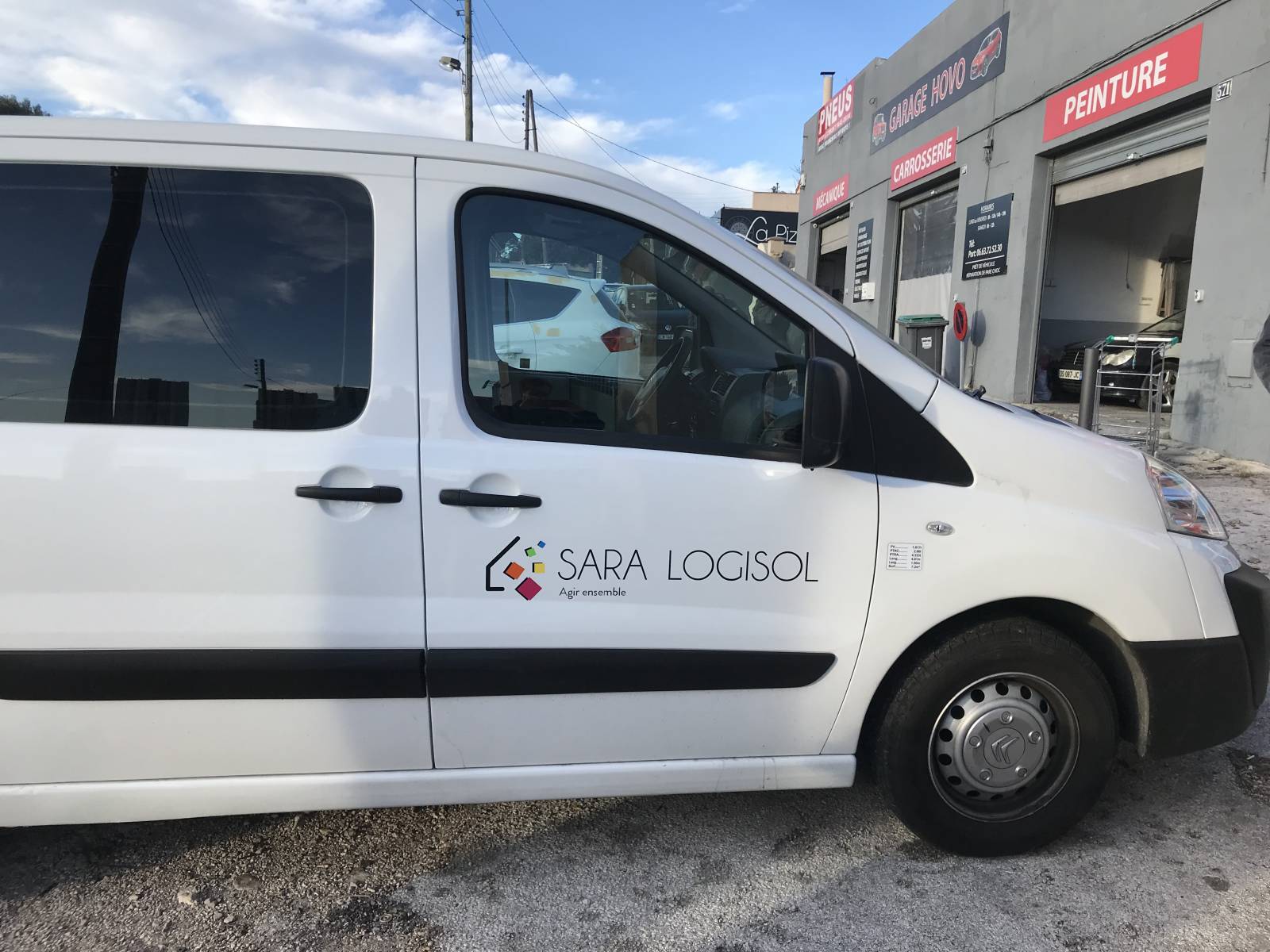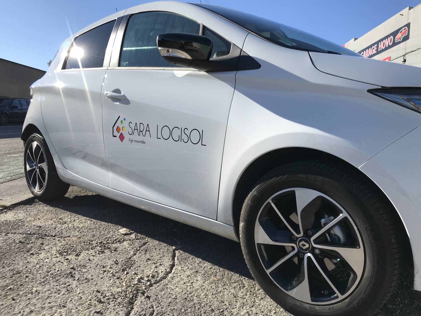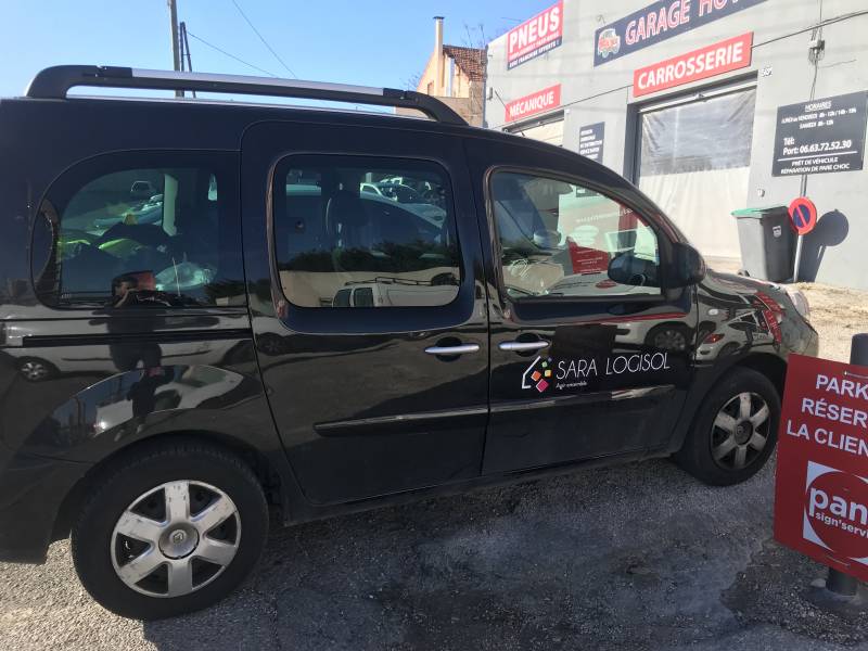 Marquage véhicule sur une citadine et deux utilitaires fait en fonction de la zone de pose sur le véhicule.