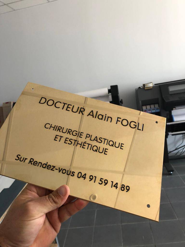 plaques gravées alu avec gravure pour un médecin chirurgical