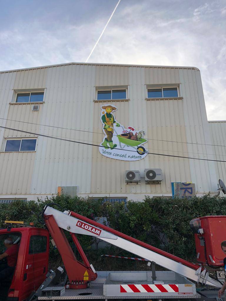 Voici la création de visuel, l'impression et la pose réalisées par nos équipes pour la jardinerie